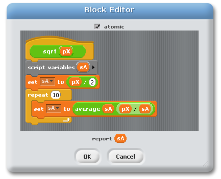 Make a reporter block that reports an estimate of the square root of its input parameter