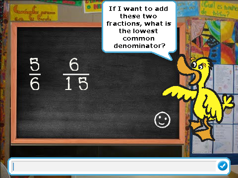 Your program should do at least the following:- Include a "teacher sprite" that gives a little tutorial about how fractions are added, and then challenges the student with some questions. For the minimum requirements, you only need to ask students to find lowest common denominators.
