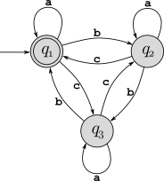 Consider the DFA \(M_1\) shown below: