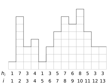 If BlackFeline starts at position 2 (height 7), jumps to position 3 (height 3), and then to position 5 (height 1), she gets 2 units of superpower charge. However, that’s not the best choice! She can start at position 2, jump to position 9, then to position 11, and finally to position 12. She doesn’t fall as far as the first scenario, but since there are 3 falls instead of 2, she gets 3 units of superpower charge from this possibility.
