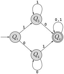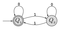 As an example of this conversion, consider the following DFA \(M\) (recognizing strings with an even number of 1’s):
