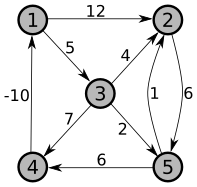 Perform the Floyd-Warshall algorithm on the weighted, directed graph below. Show the matrix \(D^{(k)}\) that results for each iteration of the outer loop.